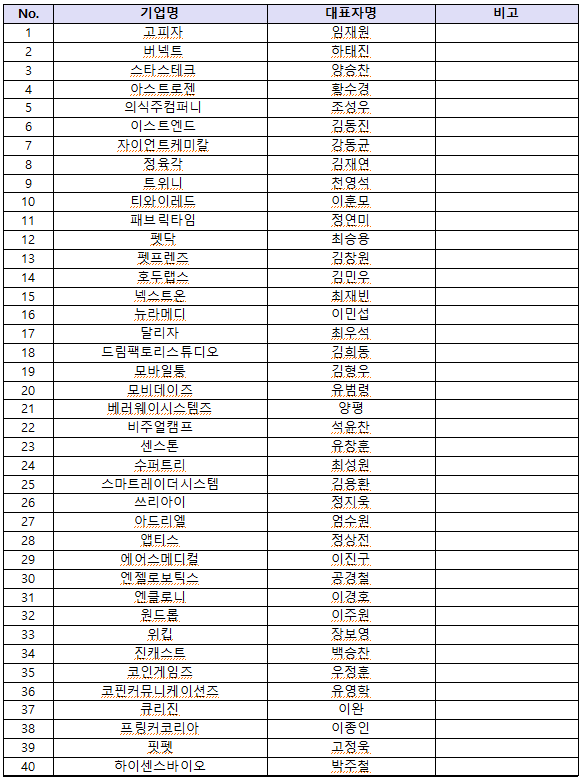 - 아기유니콘 200 육성사업에 선정된 40대 벤처기업
