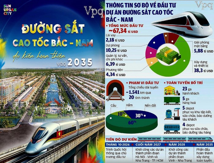 베트남 정부는 2026년 타당성 조사와 기본설계, 2027년 착공, 2035년 상업 운행을 목표로 하고 있다. 하노이~호치민 간 1,541㎞ 구간을 350㎞급 표준궤 고속철로 연결해 현재 30시간이 소요되는 이동 시간을 5시간대로 단축할 방침이다.