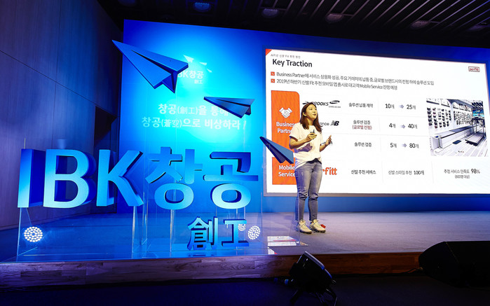 | ▲ 기업은행 'IBK 창공'에서 개최한 <데모데이>에서 청년 창업가가 발표하고 있다. (사진출처=IBK기업은행) |