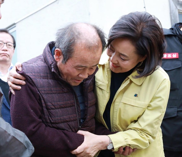 | ▲ 박영선 중소벤처기업부 장관이 산불 피해 기업을 위로하고 있다. (사진출처= 중기부 박영선 장관 블로그) |