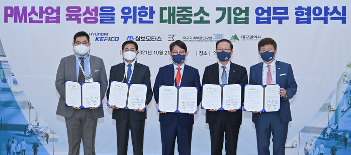 아울러 대구시는 지역 PM 산업 육성과 산업생태계 구축에 필요한 지원에 협력하고, 대구기계부품연구원은 지역 내 제조업 육성과 부품/차량에 대한 인증 및 성능기준 체계 구축을 지원한다.