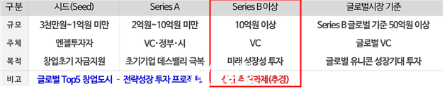 12월에는 그보다 더 성장한 ‘시리즈B’(투자규모 10억 원 이상) 단계에 있는 스타트업에 투자하기 위해 1,000억 원 이상 규모의 펀드를 추가 조성한다. 최대 32개 기업에 기업당 30억 원 이상의 대규모 투자를 단행해 더 큰 성장을 이끈다는 계획이다.