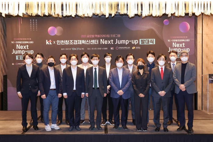 KT는 지난 9월부터 인천창조경제혁신센터와 공동으로 디지털·바이오헬스케어 분야의 유망 스타트업을 발굴, 육성하는 전문 엑셀러레이팅 프로그램 ‘넥스트 점프업(Next Jump-up)’을 시행한 결과 9개 스타트업을 최종 선정했다고 21일 밝혔다.