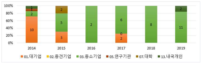 | ▲ 각 업체별 지식재산권 특허 신청 현황고 추이를 그래프도 나타냈다. (사진출처=특허청) |