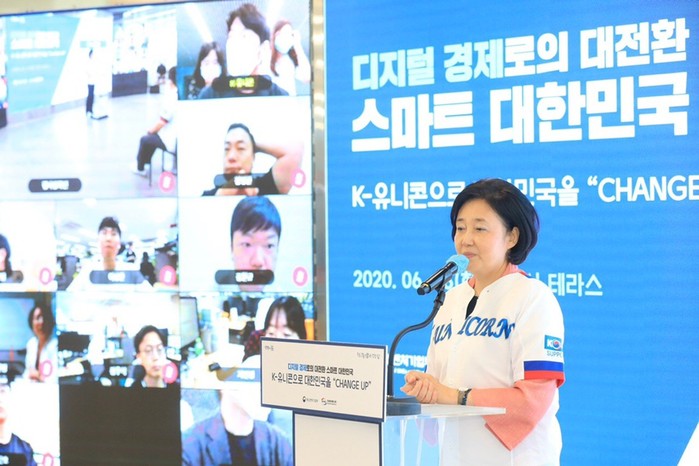 | ▲ 유니콘 CHEER UP 행사에서 박영선 중기부 장관이 비전을 발표하고 있다. (사진출처 = 박영선 중기부 장관 블로그) |
