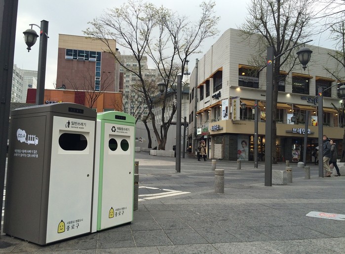 | ▲ 서울 시내 설치한 스마트 태양광 압축 쓰레기통 클린큐브 (사진출처=이큐브랩) |