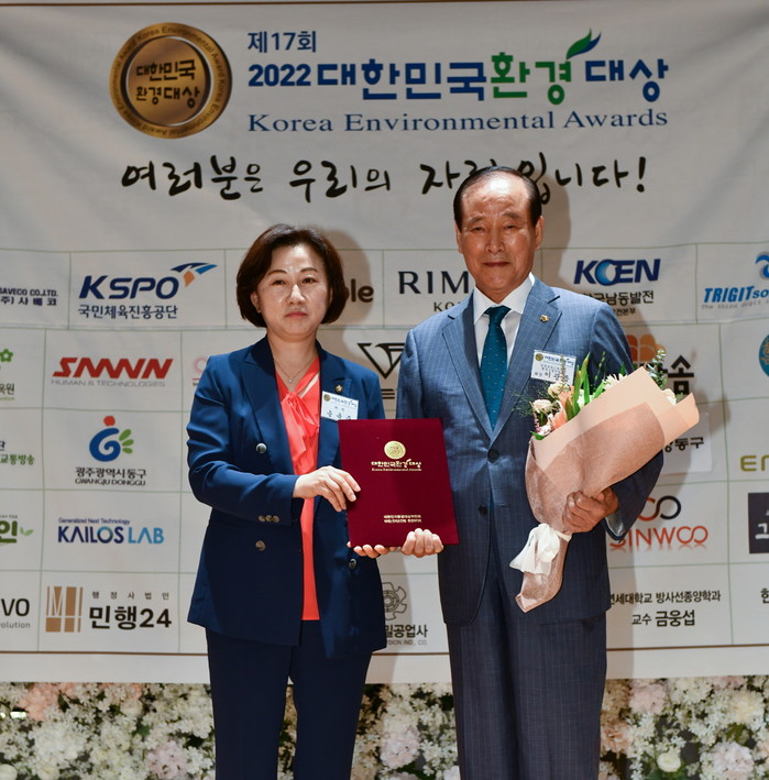 | ▲ (왼쪽부터)송옥주 국회의원(전 국회환경노동위원장)과 이광옥 한국프라스틱공업협동조합연합회장(㈜반도 대표이사 회장) |