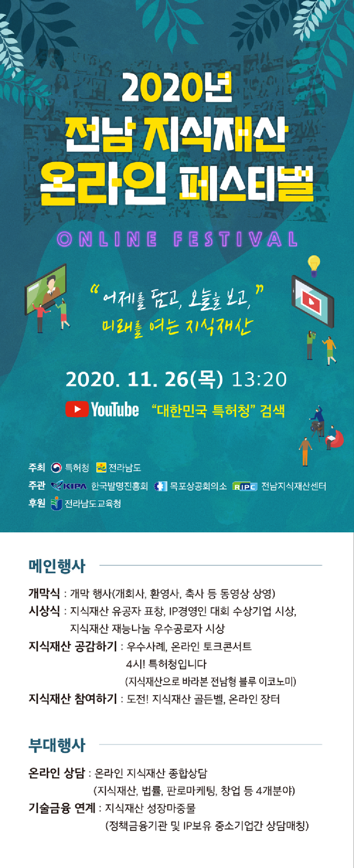 | ▲ '2020 전남 지식재산 페스티벌' 의 공식 포스터이다. (사진출처=전남도청) |