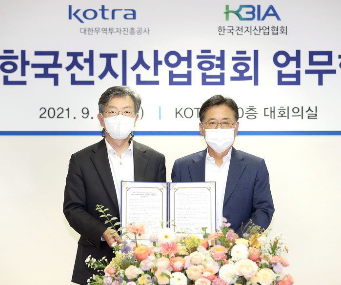 [더스타트 = 한미경 기자] KOTRA(사장 유정열)는 17일 서울 염곡동 본사에서 한국전지산업협회(KBIA, 회장 전영현)와 함께 이차전지 분야 국내기업의 해외 진출 지원을 위한 업무협약(MOU)을 체결했다.