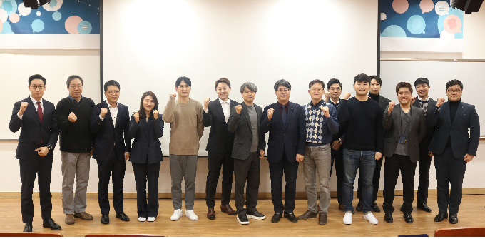| ▲ '세종 창업가의 날'에 참석한 세종대학교 관계자들과 멘토들이 기념촬영을 하고 있다. (사진출처=세종대) |