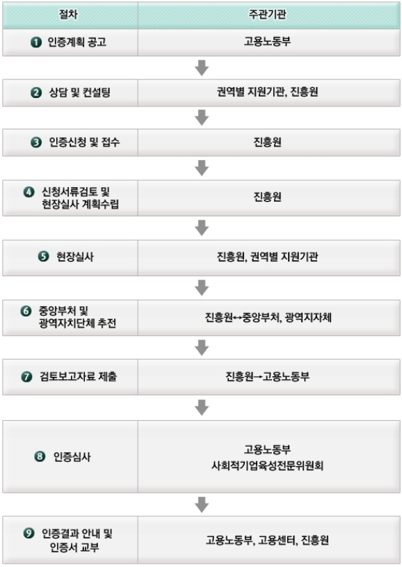 | ▲ 복잡해보이는 인증절차, 하지만 혜택이 엄청나다. (사진출처=한국사회적기업진흥원) |