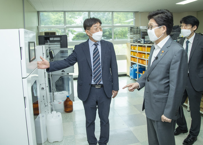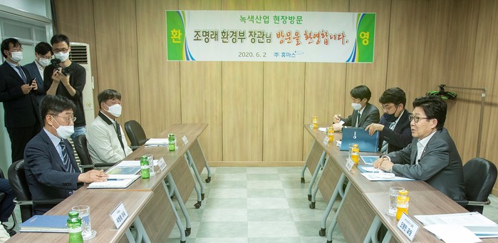 조 장관의 이날 현장 방문은 그린뉴딜과 관련, 녹색산업 혁신정책의 하나인 '녹색기술벤처' 성공사례를 공유하고 현장 목소리를 듣기 위해 마련됐다.