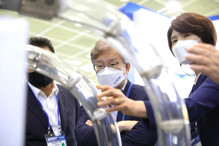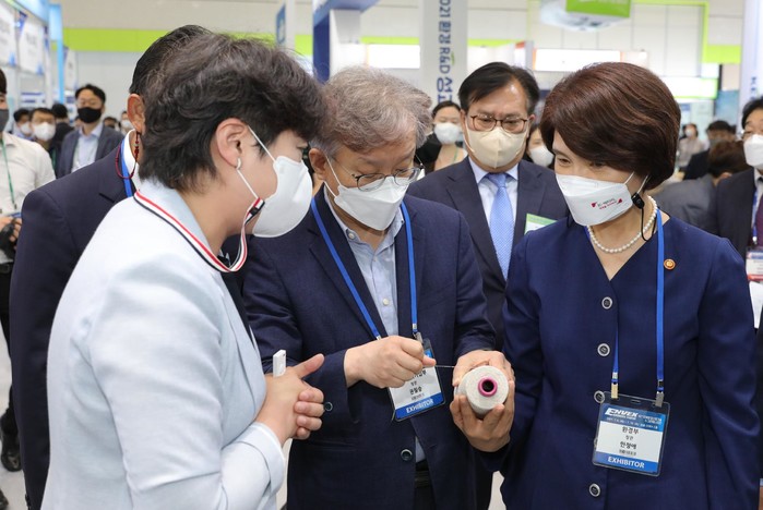 | ▲ 두 부처 장관은 선정서 수여식 행사에 앞서 같은 장소에서 7월 8일부터 3일간 열리고 있는 ‘국제환경산업기술·그린에너지전’ 개막식 행사(7월9일 오전 10시)에 참석해 주요 기업들의 우수녹색기술과 제품들을 살펴보고 중소환경기업을 격려했다. |