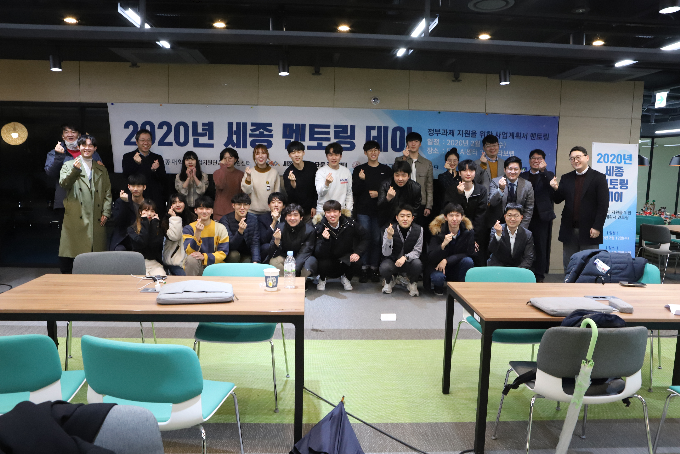| ▲ ‘세종 피칭 & 멘토링데이’ 시상식 참석자들이 기념 촬영을 하고 있다. (사진출처=세종대) |