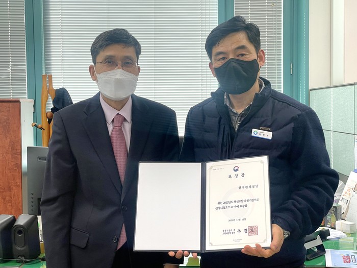 | ▲ 인천지방조달청 이병권 경영관리과장(왼쪽), 한국환경공단 이민복 경영지원처장(오른쪽)<사진제공=한국환경공단> |