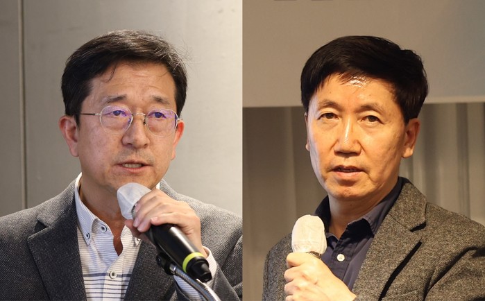 | ▲ (왼쪽부터)기조강연을 한 김돈정 경희대학교 교수와 주제 발표를 한 나관식 서원대학교 교수<사진제공=한국지식서비스산업협의회>. |
