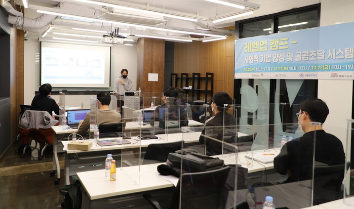 | ▲ 세종대 캠퍼스타운 지원센터의 ‘레벨업 캠프-사회적 기업 양성 및 공공조달 시스템 이해’ 모습<사진제공=세종대> |