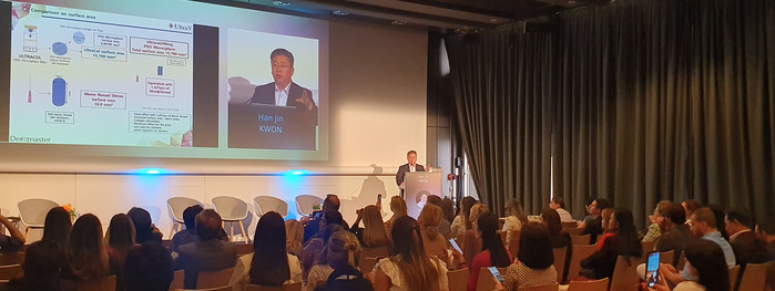 | ▲ ▲ 울트라브이 권한진대표 ‘2022 IMCAS Paris’ 학회강의<사진제공=울트라브이> |