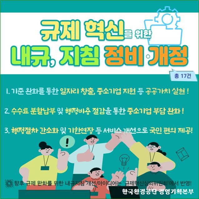 안병옥 한국환경공단 이사장은 “앞으로도 국민과 기업으로부터 제기되는 각종 행정상 어려움 해소를 위해, 공단의 시각에서가 아닌 행정의 수요자인 국민과 기업들이 체감할 수 있는 규제 혁신을 지속적으로 실시할 것“이라고 말했다.
