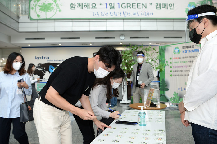 또한, KOTRA는 전 직원이 ESG 경영 실천에 동참할 수 있는 다양한 캠페인을 추진 중이다. 지난 15일에는 ‘1일 1Green, 전직원 친환경 실천 서약 캠페인’을 통해 직원들이 직접 서약카드에 서명하며 친환경 실천을 다짐했다.