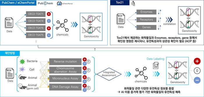 수집된 데이터는 유전독성 속성인 유전자 변이, 염색체 이상, DNA 손상/복구의 속성과 단백질, 박테리아 영향, 포유류 세포 영향, 동물 영향, 동물의 생식세포 영향에 따라 필터링 후, 원시 데이터로 정리되는 과정을 거치게 된다.