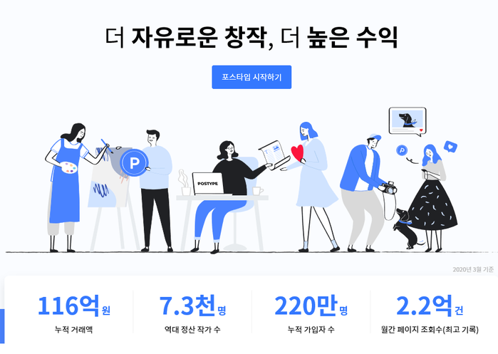 | ▲ 자유로운 창작과 안정적 수입을 창출할 수 있는 "포스타입" 의 홍보 이미지 (사진출처 = 포스타입 홈페이지) |