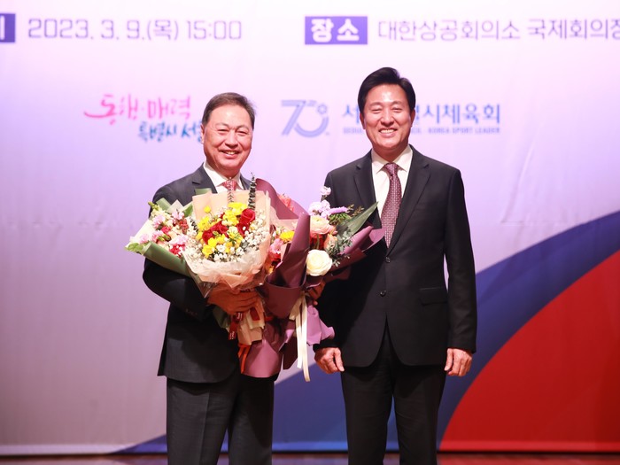 | ▲ 민선 2기 서울특별시체육회 강태선 회장(왼쪽), 오세훈 서울시장(오늘쪽)<사진제공=서울특별시체육회> |