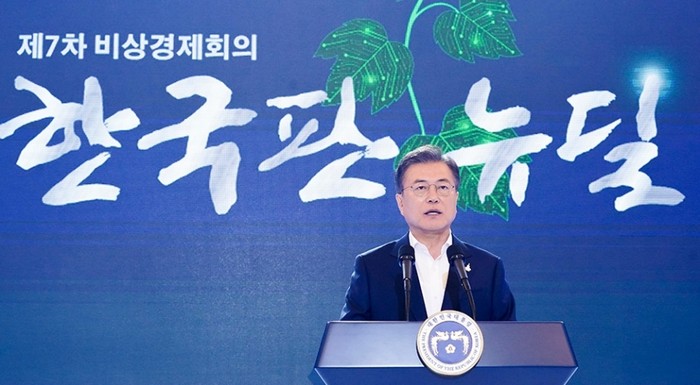 | ▲ 문재인 대통령이 "한국판 뉴딜 국민보고대회" 를 발표하고 있다. (사진출처 = 청와대) |