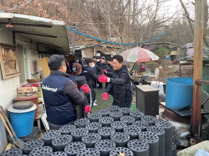 캐셔레스트의 이번 봉사활동은 지난 9일 서울 서초구 원지동 일대에서 방역지침을 준수한 가운데 실시했으며, 대표이사를 포함한 캐셔레스트 임직원으로 구성된 봉사단 30여 명은 독거 어르신 등 취약계층에 직접 연탄을 배달하며 이웃과 따뜻한 정을 나눴다.