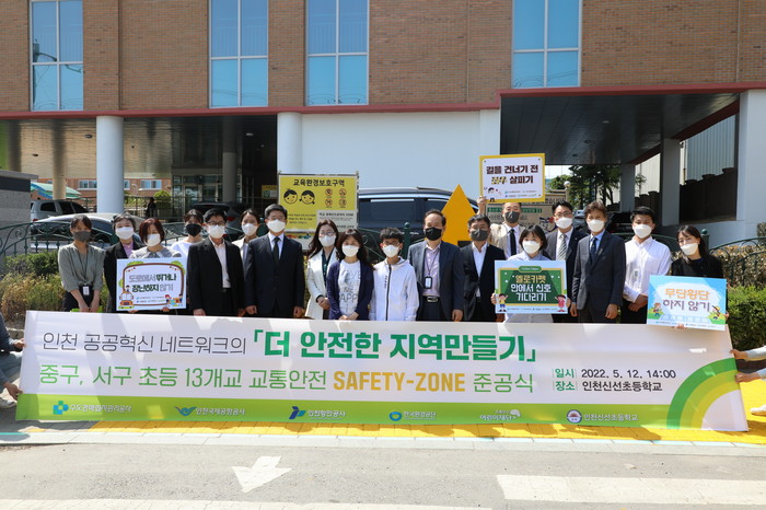 세이프티 존(SAFETY-ZONE)이 설치된 학교 13곳은 신선초등학교, 신광초등학교, 인성초등학교, 송월초등학교, 연안초등학교, 신흥초등학교, 삼목초등학교, 하늘초등학교, 운서초등학교, 운남초등학교, 간재울초등학교, 공촌초등학교, 양지초등학교이다.