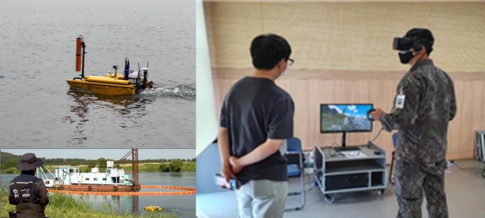 | ▲ 수상드론과 훈련모습(왼쪽), 교육용 가상현실(VR)(오른쪽)<사진제공=한국환경공단> |