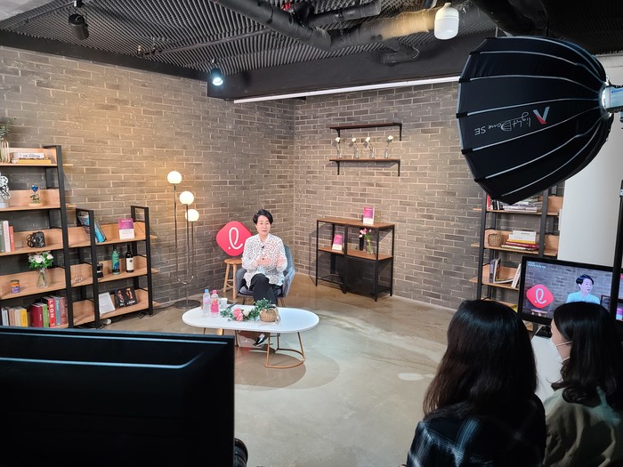 | ▲ ’2021년 여성 인재 리더십 포럼’에 초청된 ‘윤여순 박사’가 강의를 하고 있다<사진제공=롯데건설>. |