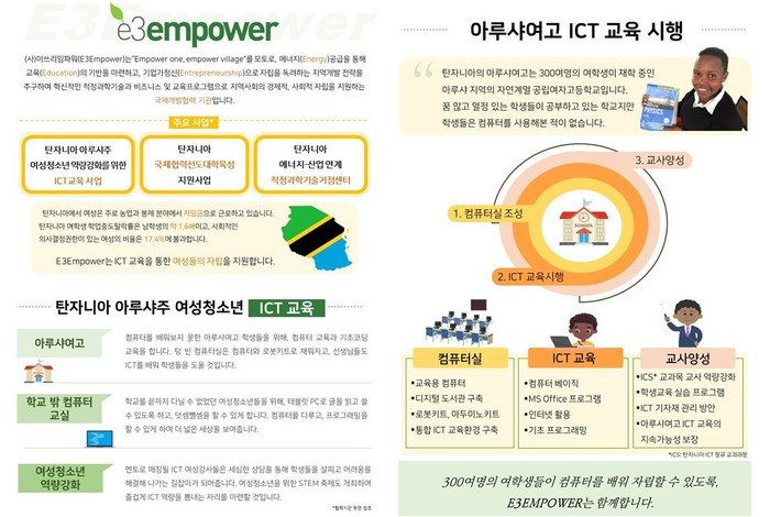 탄자니아 현지 사업책임자인 이지영 대표(E3Empower Africa)는 “지금까지는 탄자니아 교육청, 유니세프, 컴패션 등 현지기관과 주로 협력해 왔다”라며, “한국국제협력단(KOICA)과 함께 공식적으로 탄자니아 공교육 내 정규 ICT교육을 하게 되어 매우 뜻깊게 생각한다.”라고 밝혔다.