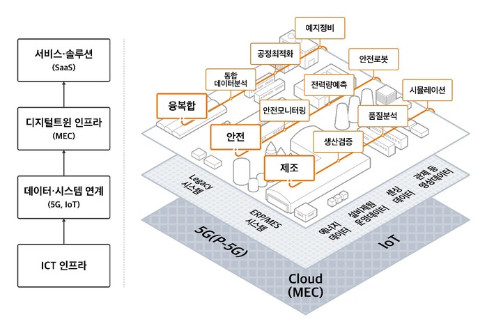 해당 과제에서 SKT와 파트너사들은 소재·부품·장비 제조업체를 위한 ▲생산준비 검증 ▲생산품질 분석 ▲생산 가상화 모니터링 등 18개 제조 부문 서비스와 ▲안전 위험성 모니터링 ▲전력사용량 예측 ▲안전 패트롤 로봇 등 13개 안전 부문 서비스를 개발해 선보였으며, 참여 업체들이 직접 관리할 수 있는 통합관제센터도 디지털트윈으로 구현한 바 있다.