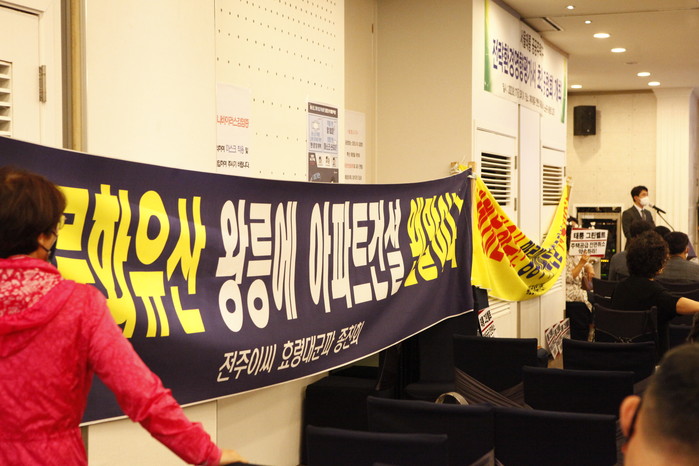 좌장을 맡은 장윤영 광운대학교 교수와 함꼐 LH공사 측과 주민대표의 토론이 이뤄질 예정이었으나, 참석한 주민들의 반발에 공청회는 시작도 못 하고 무산됐다.