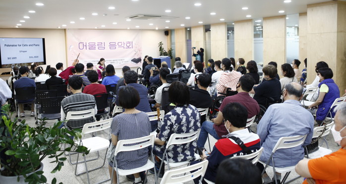 올해로 5회째를 맞는 어울림음악회는 시각장애인으로는 세계 최초로 실내악단 하트 쳄버오케스트라의 악장을 맡았던 김종훈 바이올리니스트와 만 14세 나이로 미국 커티스 음악대학에 합격한 김태연 양, 염정은 피아니스트가 함께 했다.