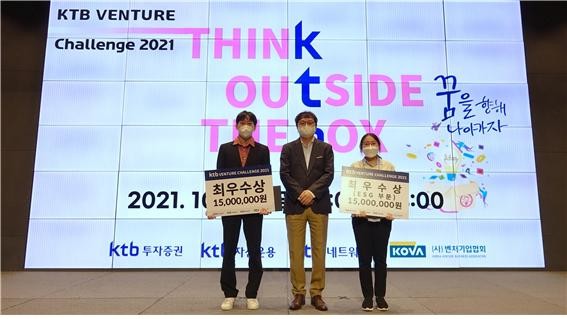 | ▲ 최우수상 시상 (왼쪽부터) 메디버디 안준규 대표팀원, 벤처기업협회 강삼권 회장, 랩오랩 정유진 대표팀원 |
