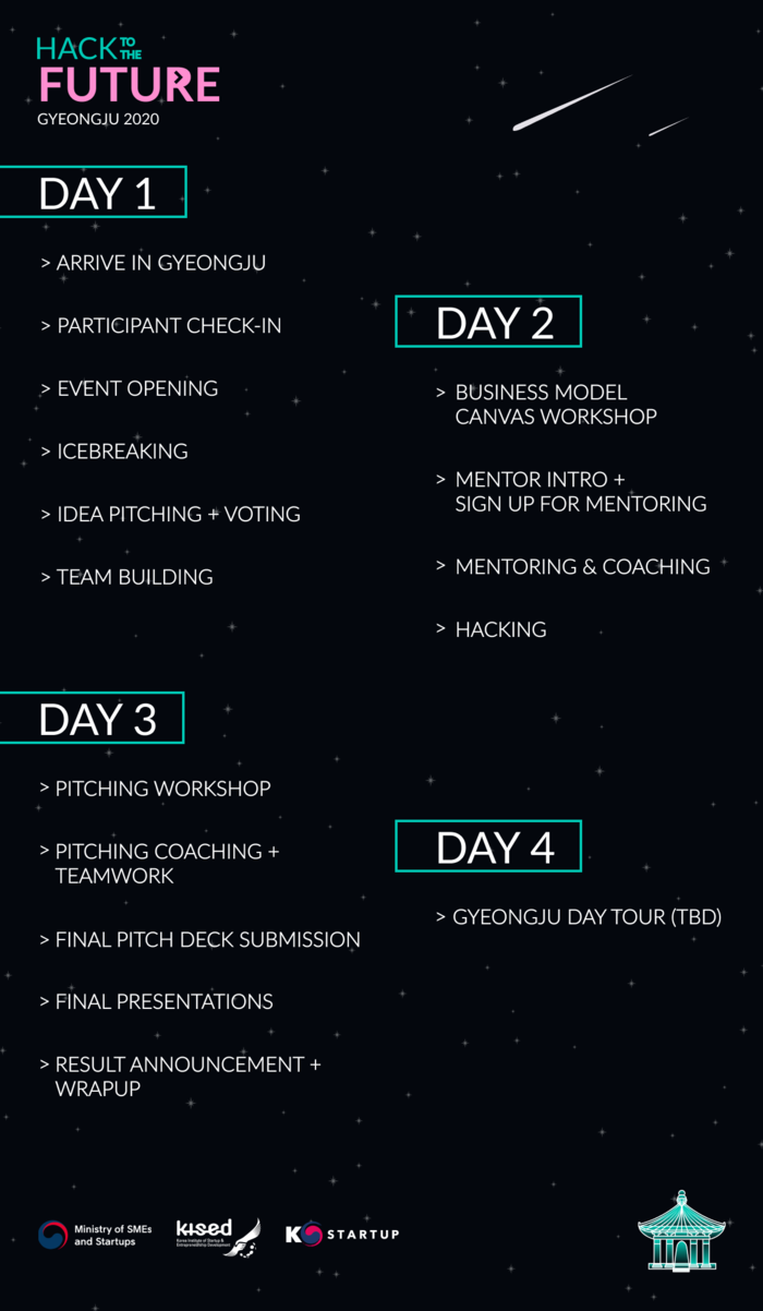 | ▲ 'HACK TO THE FUTURE' 프로그램 진행 일정표 (사진출처 = K-Startup) |