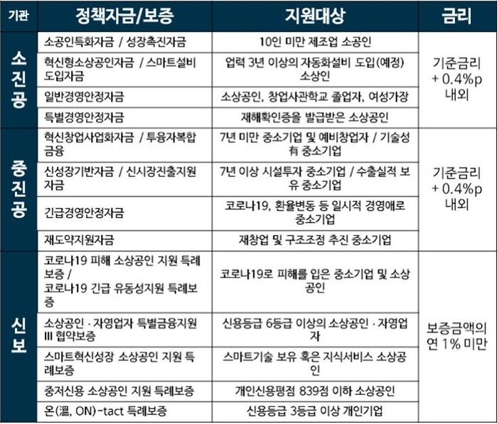 | ▲ <소진공, 중진공, 신보 소상공인·자영업자 및 소기업 대상 정책자금> (자료: 각 기관) |