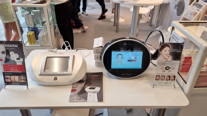 리프팅, 볼륨 개선 등 다양한 효과가 있어 각국 바이어들의 울트라콜 총판 문의가 끊이지 않았으며 울트라브이의 대표이자 세계적인 항산화 권위자로 명성을 얻고 있는 권한진 대표의 울트라콜(ULTRACOL, PDO Thread lifting vs PDO Powder Filler lifting) 강연 역시 화제를 모았다.