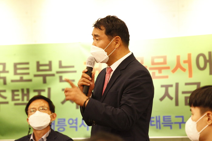 | ▲ 박환희 의원(서울 노원2, 서울시의회 운영위원장)은 7월 21일 오후 2시 서울 노원구 화랑로 325 제이더블유컨벤션웨딩홀 제6층에서 진행된 ‘서울태릉 공공주택지구 전략환경영향평가서 초안 공청회’에 참석해 공공주택지구 지정계획에 대해 문화재보호, 환경보호 등의 이유로 사업 불가 방침을 강하게 주장하고있다. |