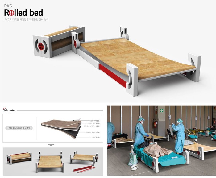 대상 ‘PVC Rolled bed’, PVC 장판 재활용 간이 침대 접어 보관… 대량 응급환자 및 침상 필요 시 활용