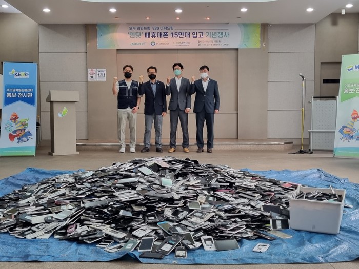 한편 민팃은 상반기까지 수거하여 보관 중이던 폐휴대폰 15만 대를 안전하게 재활용하기 위해 7월 26일 수도권자원순환센터(경기 용인)에서 한국환경공단이 참관한 가운데 E-순환 거버넌스로 인계했다.