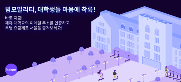이외에도 빔모빌리티는 각 대학 총학생회, 학생복지위원회 등과 함께 다양한 이벤트도 기획하고 있다. 현재는 공식 인스타그램을 통해 여름방학 이벤트인 ‘슬기로운 #빔학생활’ 해시태그 인증 캠페인을 진행 중으로, 제휴를 맺은 건국대·경희대·동국대·숙명여대·한양대와 함께 하고 있다.