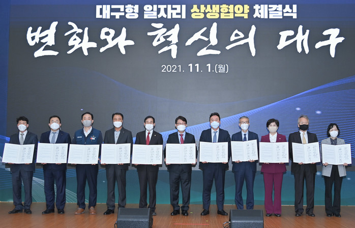 협약식에는 산업통상자원부장관, 대통령 직속 일자리위원회 부위원장 등 중앙부처 인사와 지역 국회의원, 경제단체장 등 50여 명이 참석해 대구형 일자리의 새로운 출발을 축하했다.