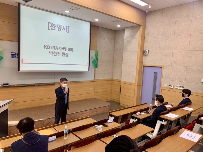 박한진 KOTRA 아카데미 원장은 “주요 선진국과 우리나라의 코로나19 상황이 지속적으로 호전된다면 앞으로 해외시장이 활기를 띨 것”이라며 “중소·중견기업에서 환영받는 인재를 키워내겠다”고 밝혔다<사진제공=코트라>.
