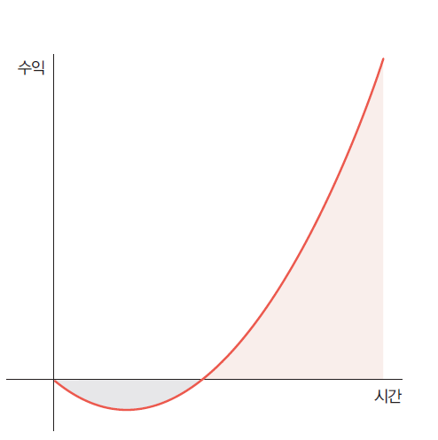 ‘지식 창업’은 J 커브를 그리는 것과 동일하다. 노력 대비 수익이 적다고 생각할지도 모르겠지만 일단 완성만 하면 폭발적으로 증가할 수 있다는 이점이 있다.