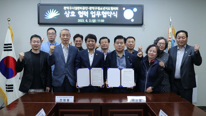 | ▲ 관악공단-관악구청소년지도협의회 업무협약식 사진<사진제공=관악구시설관리공단> |