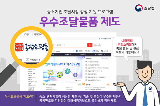 ‘우수조달물품’ 은 기술·성능이 뛰어난 중소·벤처기업의 기술개발 제품의 공공판로를 지원하는 제도로, 2019년 연간 구매 액은 약 3조 2천억 원이고 ‘우수제품’으로 지정받은 기업에게는 국가계약법령 등 관련 법령에 따라 수의계약 등을 통한 각 수요기관에 지정 물품을 공급할 수 있는 권한이 부여된다.