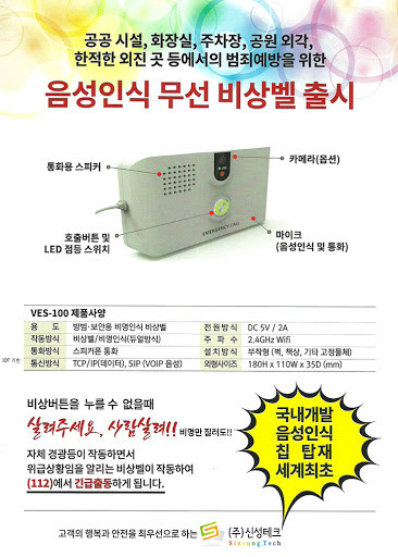 | ▲ 국내 최초 '음성인식 비상벨' 은 목소리를 통해 신호를 보낼 수 있다. (사진출처=신성테크) |